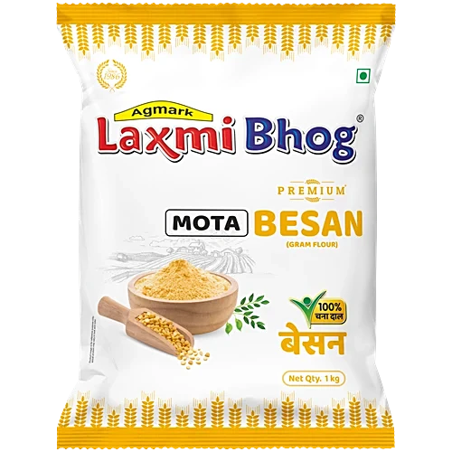 Laxmi Bhog Premium Mota Besan is made from 100% pure and high-quality chana dal, ground coarsely to deliver a rich texture and authentic taste. Perfect for preparing traditional Indian sweets like ladoos, mysore pak, and savory dishes like pakoras and sev, this besan retains its natural aroma and freshness. Hygienically processed and packed, it ensures superior quality and nutrition in every spoonful.